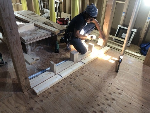 サッシ下地施工中