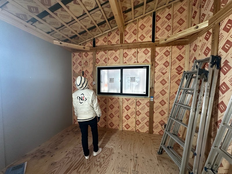 外部ではソーラーパネルの施工を行なっています。陽当たりも良く、たくさん発電してくれそうです!この後は外壁材を貼るための下地(胴縁)の施工へと進んでいく予定です。今後の進捗も楽しみにしていてください!
