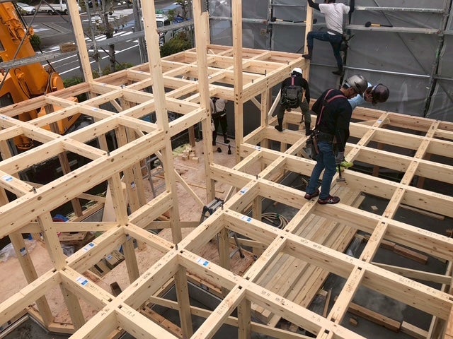 次々に柱や梁がくみ上げられていきます。