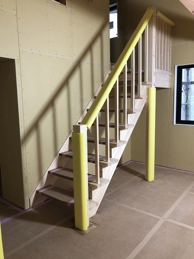 計画通りのかっこいい造作階段が出来ました。雰囲気もばっちりです。
