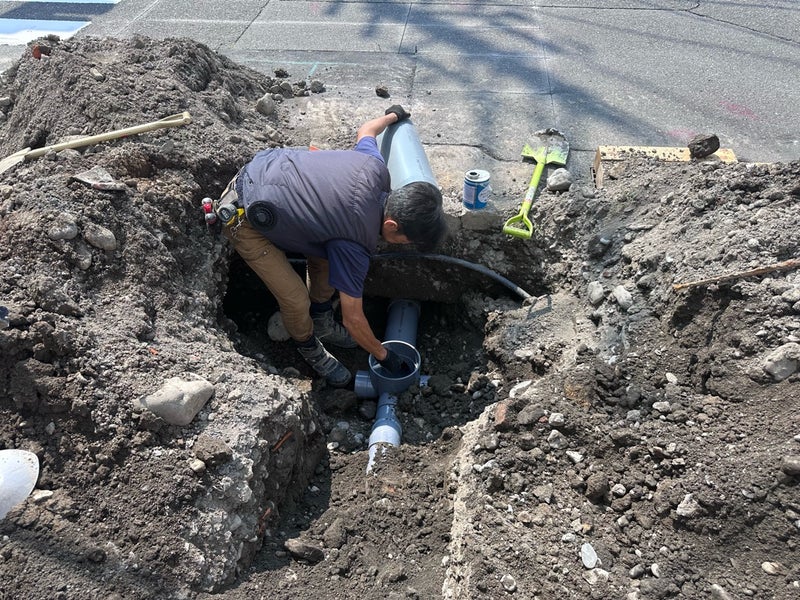 クリーニングが終わり外のコンテナが撤去されたタイミングで外の下水を接続する工事も行いました。いよいよ完成間近です。C様、お引き渡しを楽しみにお待ちください!