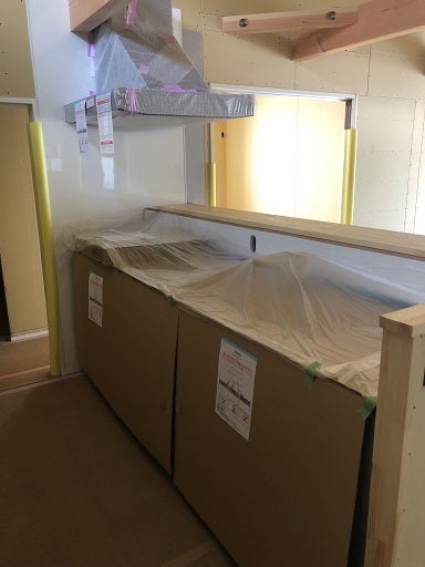 木工事が終了し設備工事としてキッチン据え付け工事を進ました。