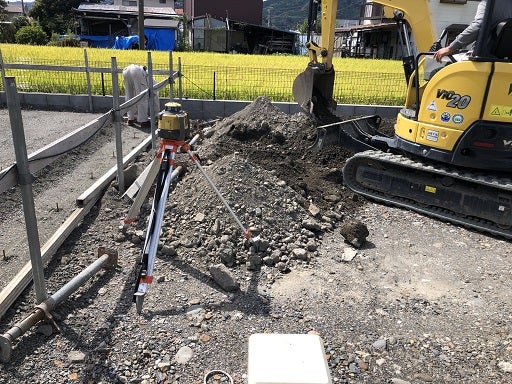 着工後工事は順調に進んでいます。遣り方後掘削工事を経て砕石事業を進めました。