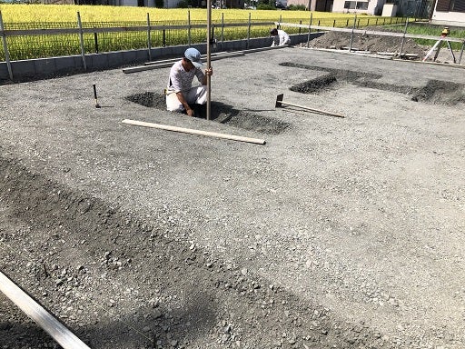 今週中ごろに捨コンクリートを打設予定です。週末から来週前半にかけて鉄筋を組む工事を進めていく予定です。