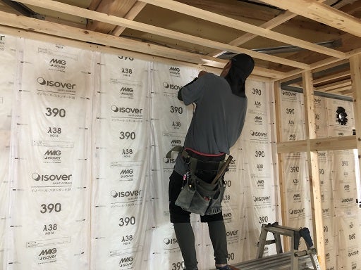 断熱材の充填工事は特に施工精度が重要になってきます。何重にも確認し確実に工事を進めていきます。