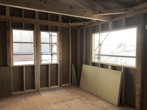 部屋の明るさや雰囲気がわかりやすくなりました。今週後半にはサッシを収める予定です。