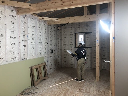 内部も外部も工事は順調に進んでいます。内部では断熱材施工の社内検査に合格し第三者の現場監査を受けました。