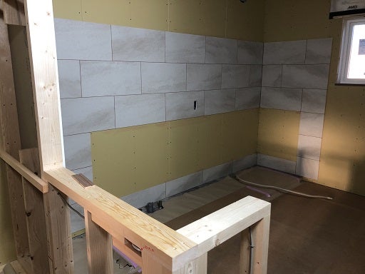 内部ではキッチン廻りのタイルの施工が完了し、