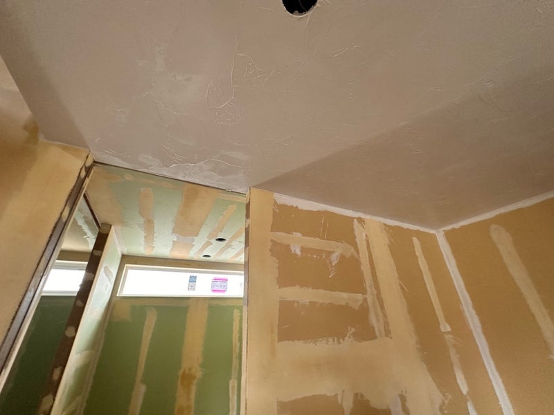 1階の方はクロス仕上げとなっています。今週はボードの目地のパテ処理を行なっています。貼り始めるのは来週からになりそうです。
