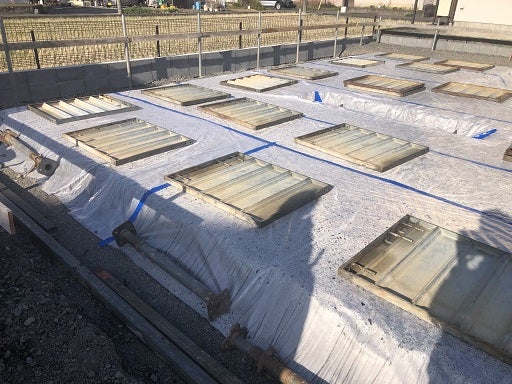 この後、土壌処理として防蟻工事を行い防湿シートを敷き込みます。