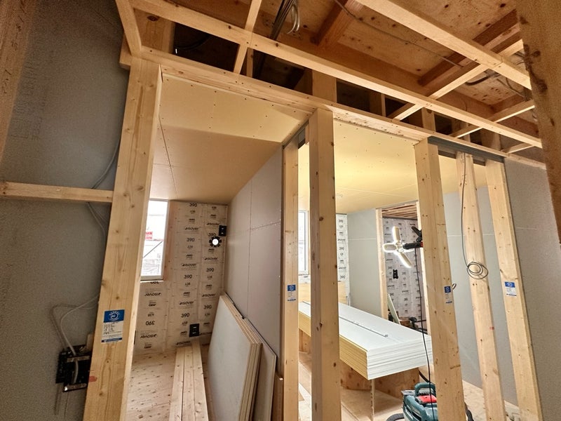 順調に木工事が進んでいます。室内の雰囲気も少しずつ分かるようになってきましたね。今後の進捗も楽しみにしていてください!