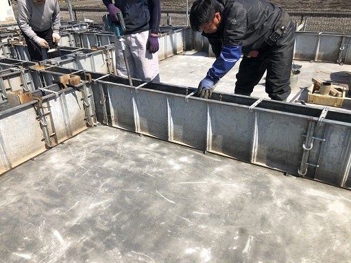 この後、しばらくコンクリートの養生期間に入ります。今週の後半には型枠の撤去を進める予定です。