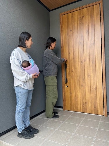 玄関前でポーズ。良い笑顔をありがとうございます。(#^^#)
