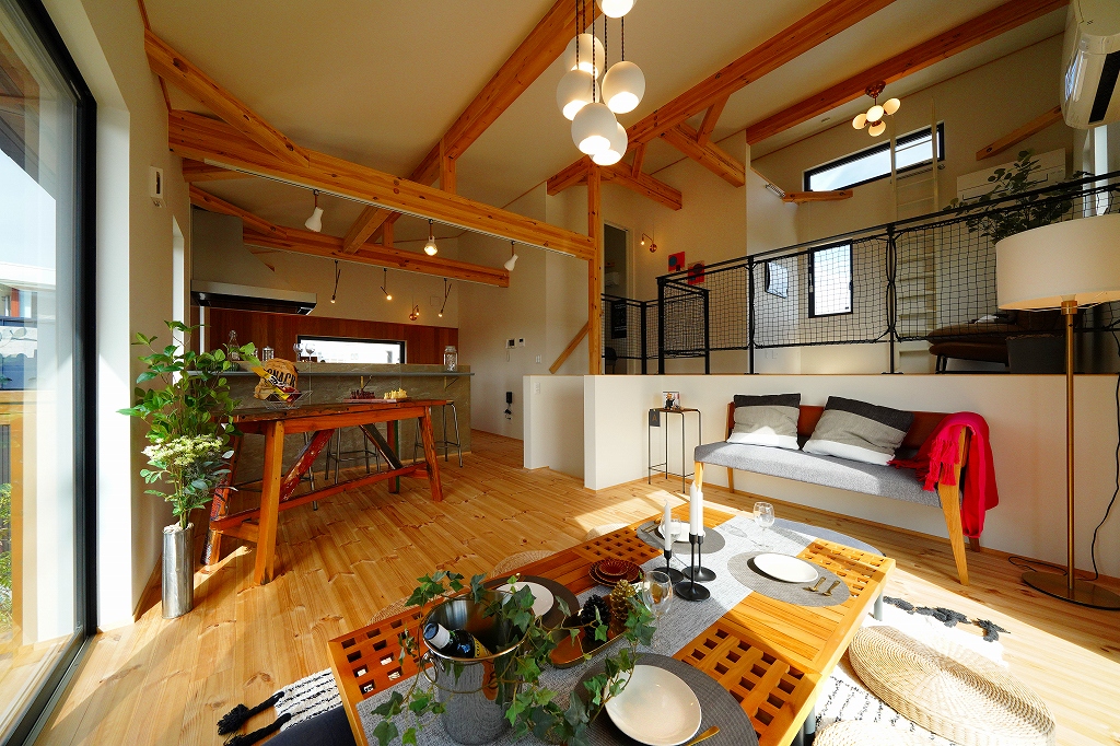 「自遊に、くらす。」をコンセプトに、スキップフロア、平屋、2階建てなど暮らしにあわせた自遊な住まいが実現します。アウトドアが好きな方、おしゃれな家、かっこいい家が好きな方に人気です。