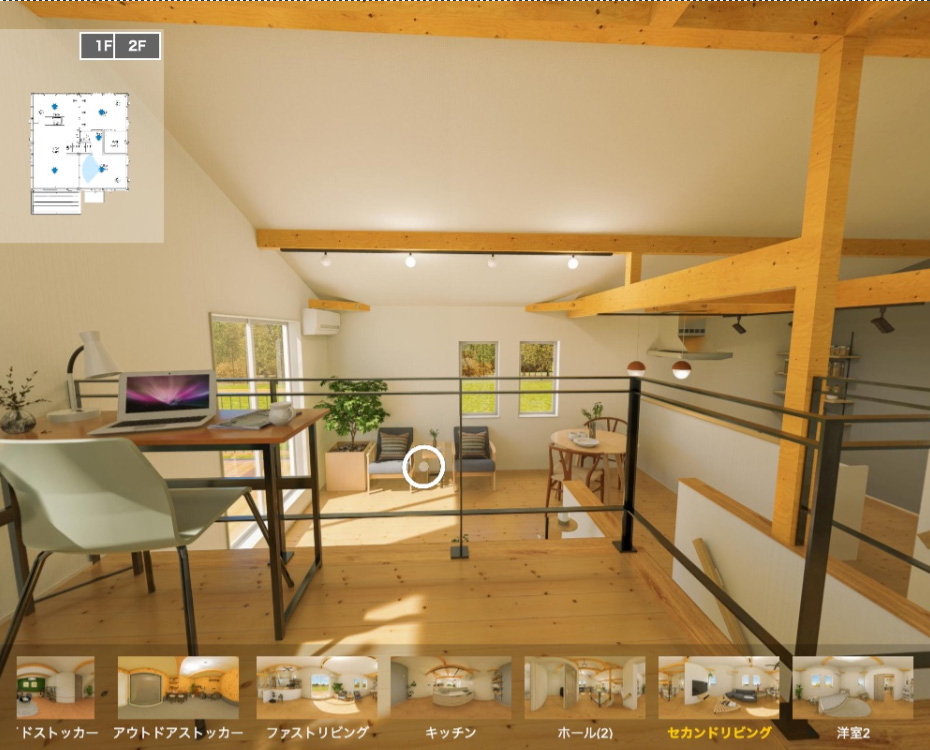 スキップ構造がリビングからダイニングキッチン、吹き抜けの上層階までつながる大空間を実現。家族が自由に過ごしながら、空間を心地よくシェアできます。