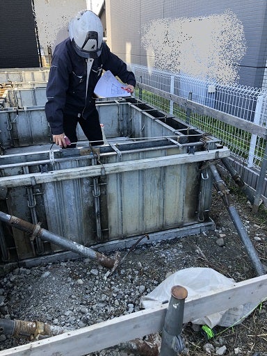 基礎工事は順調に進んでいます。底盤部分のコンクリート打設後、立ち上がり部分の型枠が組み終わったので早速社内の検査を実施しました。