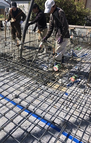 この後、内部の型枠を組み立ち上がりのコンクリート打設工事に取り掛かります。基礎工事も中盤に差し掛かりました。