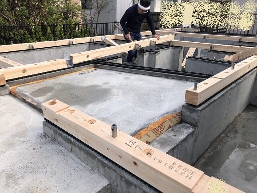 土台据え完了です。