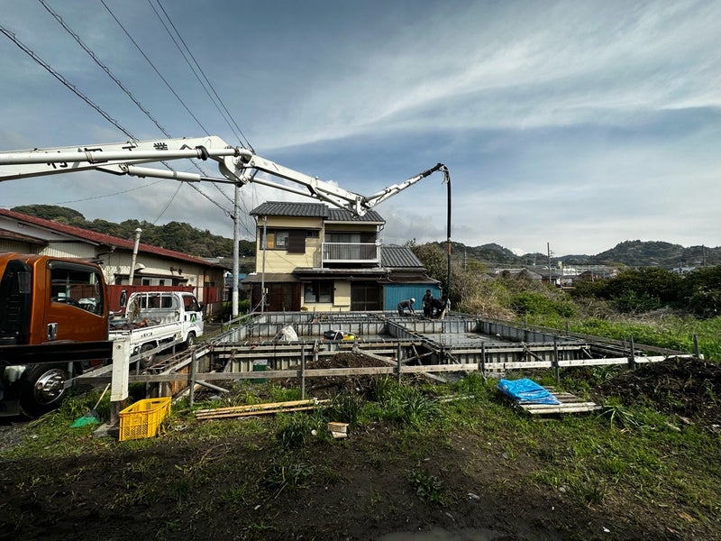 この後はコンクリートの強度が出るまで養生を行い、床下の配管工事、土台据え工事に進んで行きます。基礎完成までもう少しです。楽しみにしていてください。
