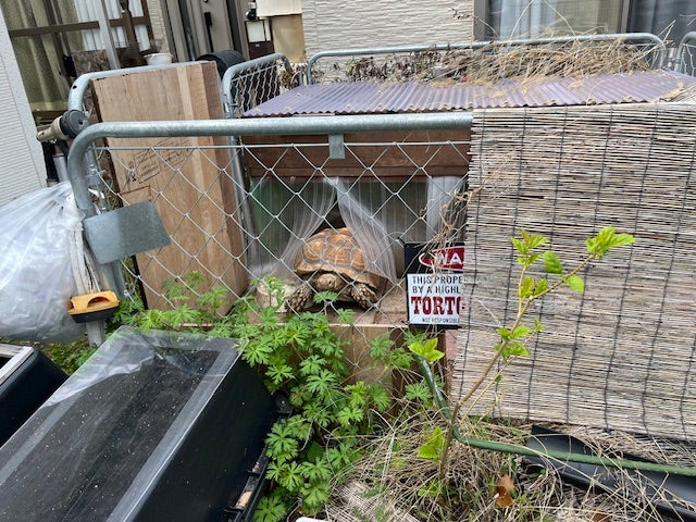 余談ですが近隣へのあいさつ回り中、巨大なカメが!1日にキャベツ4玉食すそうです!!