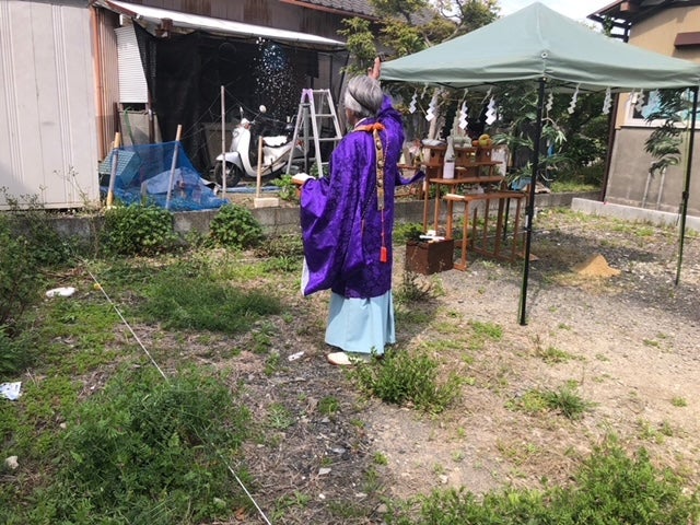 先ずいつものように丹瑚山 大法院の神主より地鎮祭進行のご案内が有ります。