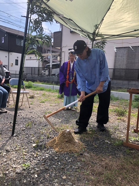 そしてS様による鍬入れの儀です。掛け声とともに見事鍬入れを完了頂きました