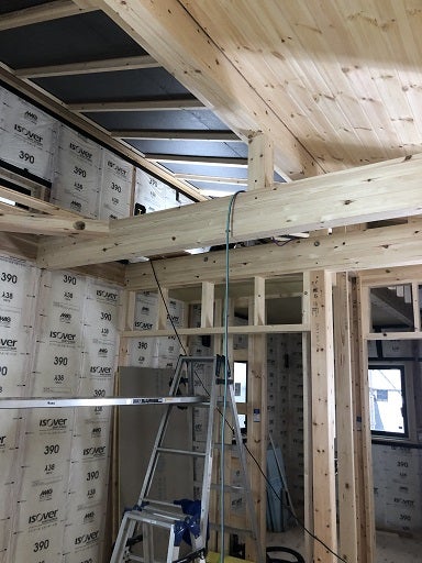 現在ロフト部分を進めています。天井が貼り終わると、1階より床板を貼っていく予定です。こちらも楽しみですね。