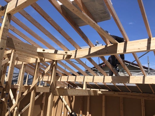 S様、おめでとうございます。今まで平面図上であった『家』が、いよいよ上棟しましたね。これからも窓が取り付けられたり、床板が貼られたり、外壁が貼られたり、階段が出来たり・・・・等、工事が進んでいくのを楽しみにしていてくださいね。