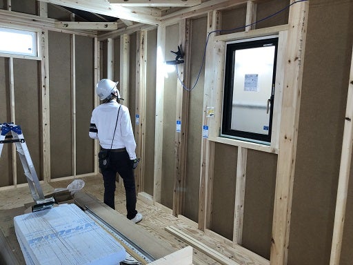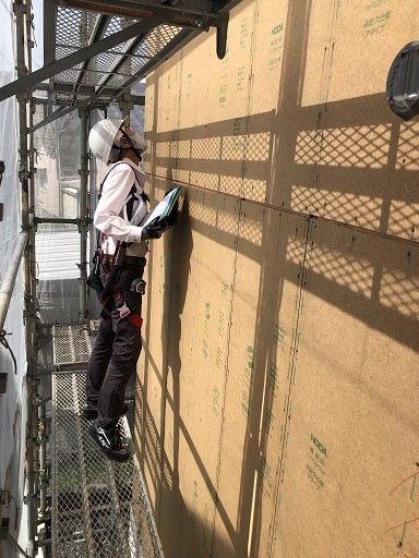 上棟後、横架材と柱の緊結、横架材の緊結、外部の構造用耐力面材の施工が終了したので、早速社内の構造躯体検査を実施しました。