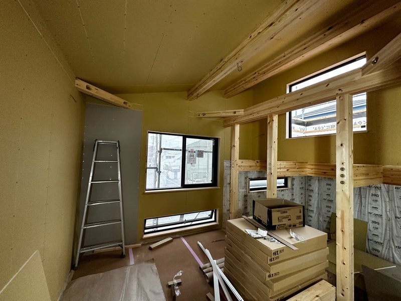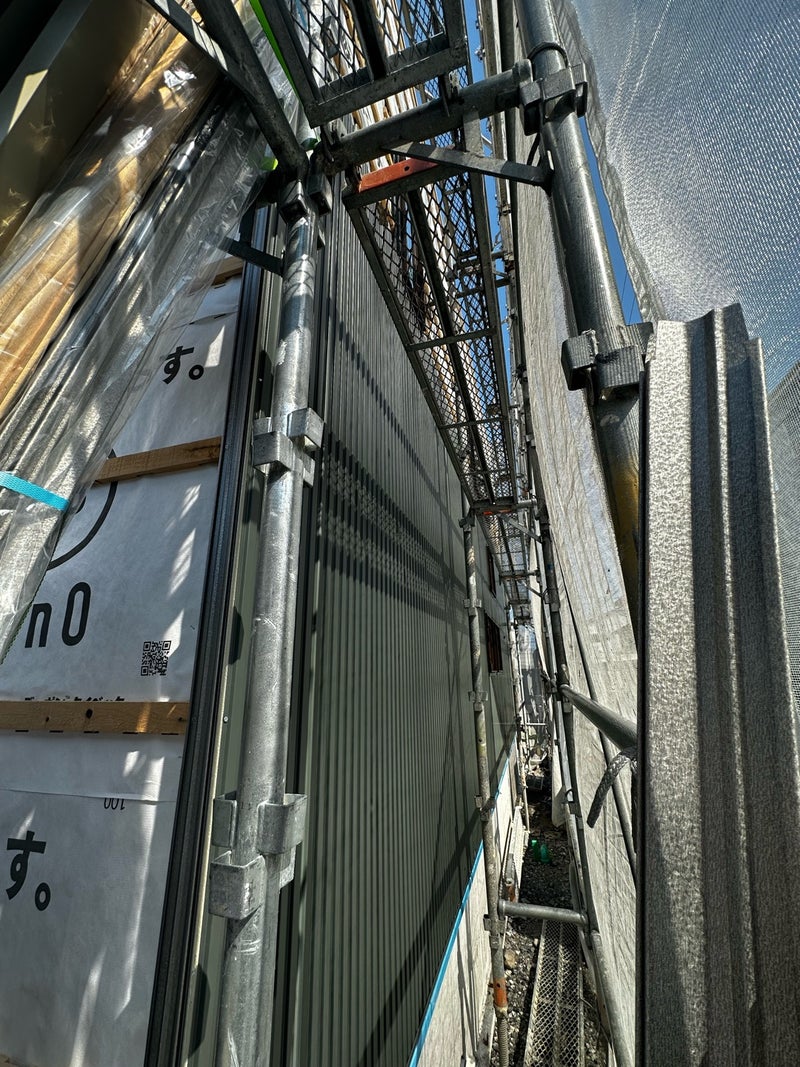 外部では外壁材の施工が始まりました。だいたい一週間程で本体の施工は終わる予定です。着々と完成に近づいています!今後の進捗も楽しみにしていてください!