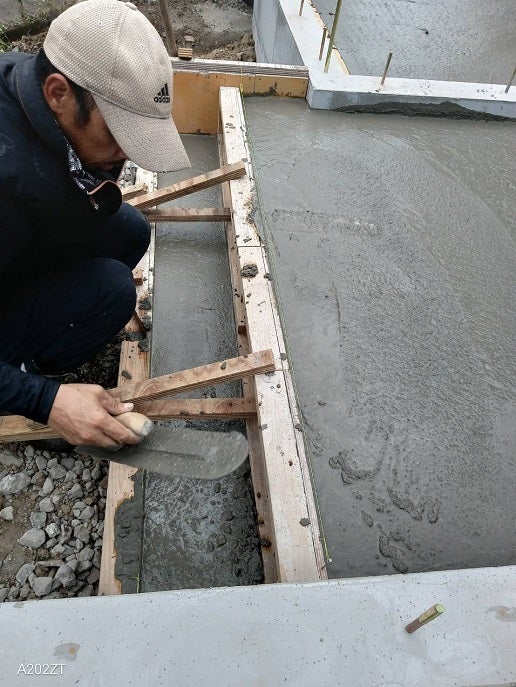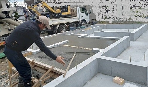ベタ基礎の底盤と立ち上がっている基礎に断熱材を入れて基礎断熱もバッチリです!表面は金鏝で綺麗に仕上げていきます。