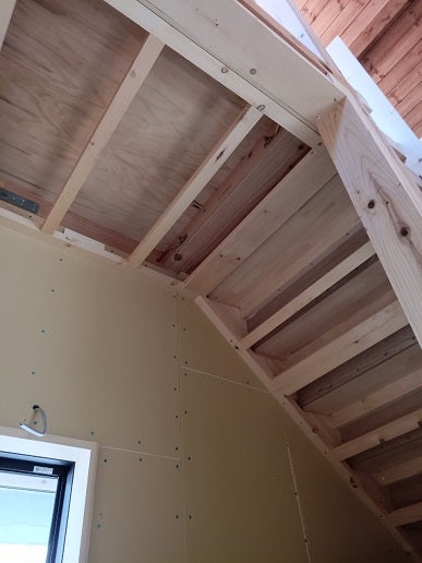 階段の裏側も補強材を入れて頑丈に作っていきます。