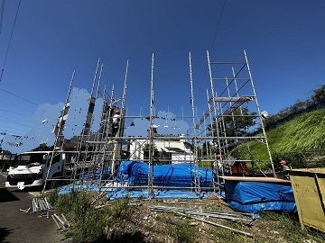 本日は大工さん達が安全に作業できるように先行足場を足場屋さんが設置!!