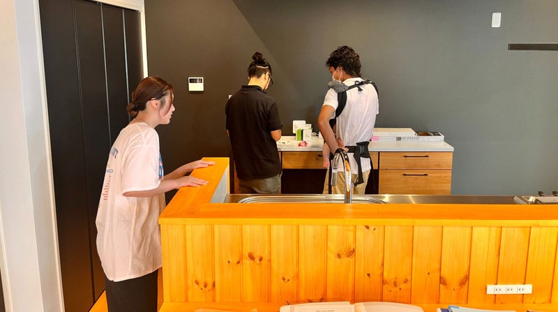 まずは現場監督の鎌田より、お引渡し書類や保証の案内。火災保険や延長保証の案内は私から。