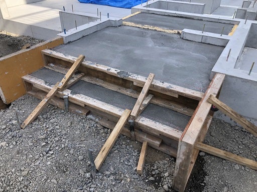 玄関・ポーチ下地のコンクリートの打設工事も終了しました。