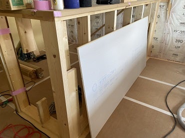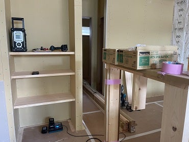 キッチン取付工事の前にカウンター下地の作成が終了し、ニッチやお仏壇置き場が形になってきました。完成イメージが一層しやすくなりましたね!