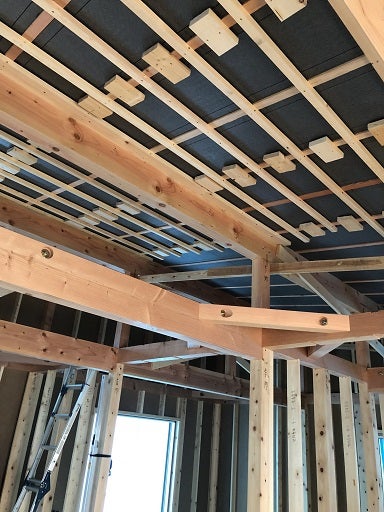 この後、外部の透湿防水紙の施工及び外壁下地の施工を進め、断熱材の充填工事を進めていく予定です。