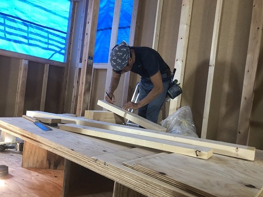 サッシ下地施工中