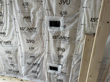 この後、社内検査で断熱材の種類や厚さ、隙間なく充填されているか、サッシ廻りの気密処理などのチェックを行います。検査合格後、今週は天井下地工事を進めて行く予定です。O様、工事の進捗を楽しみにしていて下さいね!