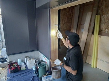 まずは下準備として、下塗りを行い汚れや細かい傷をサンディングしてから仕上げ塗りをします。塗装屋さんは養生をし、刷毛やローラーを使い分けて丁寧に塗装を進めています。