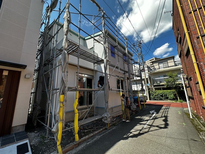外壁の検査等を行なったらいよいよ足場の撤去を行います。楽しみにしていてください!