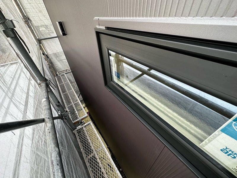 撤去前には外壁最終チェックを行なっています。キズや汚れがないかを見ながら全体的に掃除をしています。問題がない事が確認できたので本日、無事に足場が撤去されました。