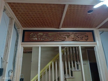 既存宅の解体工事では、日本建築の伝統的な材料を再利用する為、傷ついたりしないようように建物を造って下さる大工さん(棟梁)に手伝って頂きました。板間材・欄間・網代天井材を大切に保管し、棟梁が加工したものを新しい住宅で再利用!