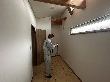 建物が図面通りに出来ているか、火災報知器や24時間換気設備が設置されているか、仕上げ材料や窓や建具のチェックを行い完了検査合格となっています。