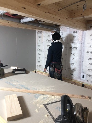 第三者による断熱材の施工監査を終え、棟梁は1階及び2階の天井下地組みを進めています。