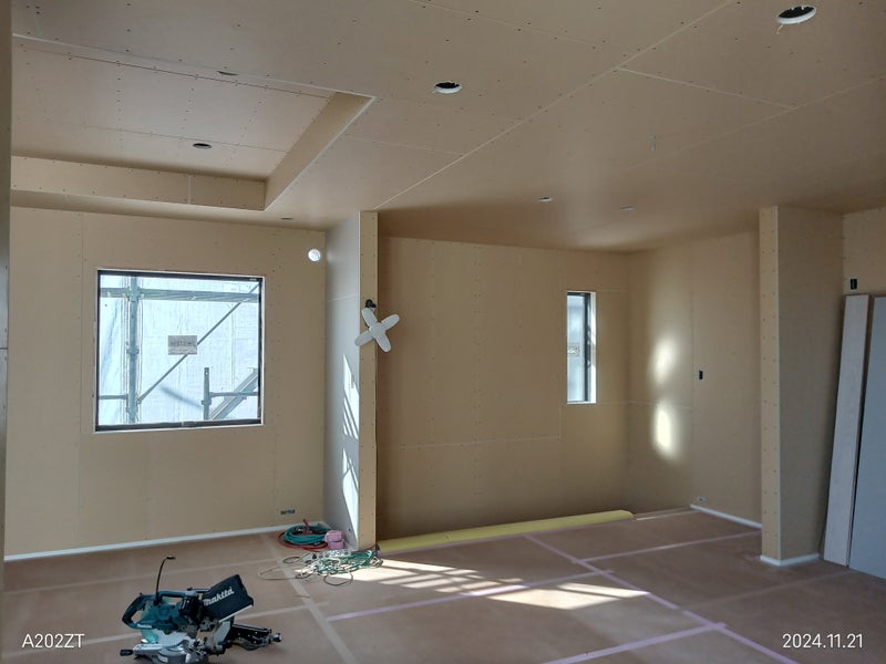 こんにちは!福本です。静岡市清水区 O様邸です。木工事は順調に進み今月中にはほぼ完成する予定です。部屋の入口の建具枠の設置が終わり壁のプラスターボード張りも終了しました。