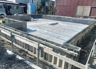 建築行程中に3回にわたり噴霧器により防蟻処理を行います。地面からの湿気が基礎に侵入しないよう防湿シートを敷き、外周部に捨てコンクリートを施工します。