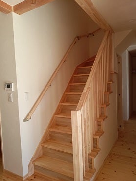 階段や床の養生も撤去され温かみのある床の無垢板の自然な風合いや、真壁と大壁の調和も取れて心地よいです!