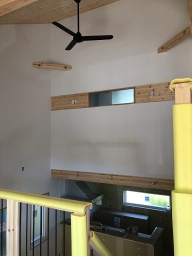 内部では、2階の天井のクロスと壁紙貼りがほぼ終了しました。