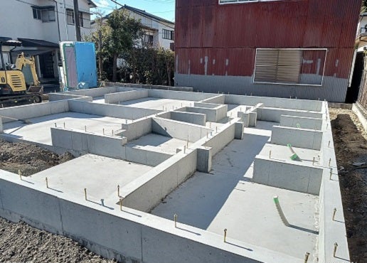 基礎工事、立ち上がりコンクリートの養生期間が終了し型枠が撤去され綺麗で強固な基礎が出来上がりました。